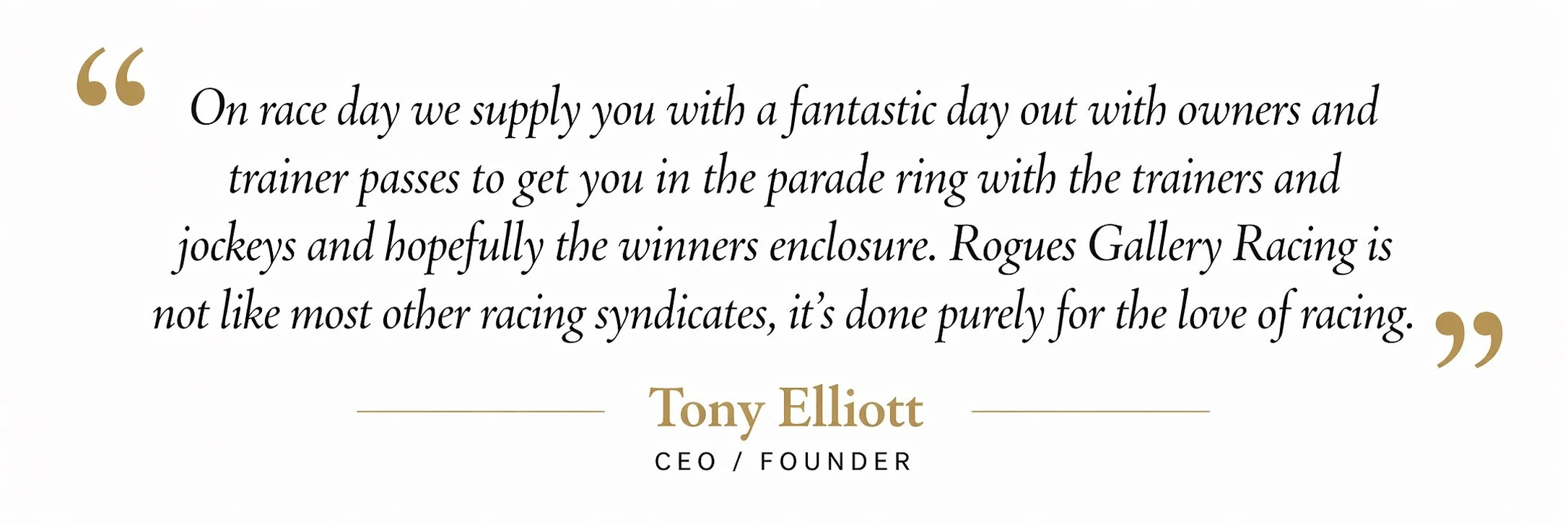 On race day we supply you with a fantastic day out with owners and trainer passes to get you in the parade ring with the trainers and jockeys and hopefully the winners enclosure. Rogues Gallery Racing is not like most other racing syndicates, it’s done purely for the love of racing.